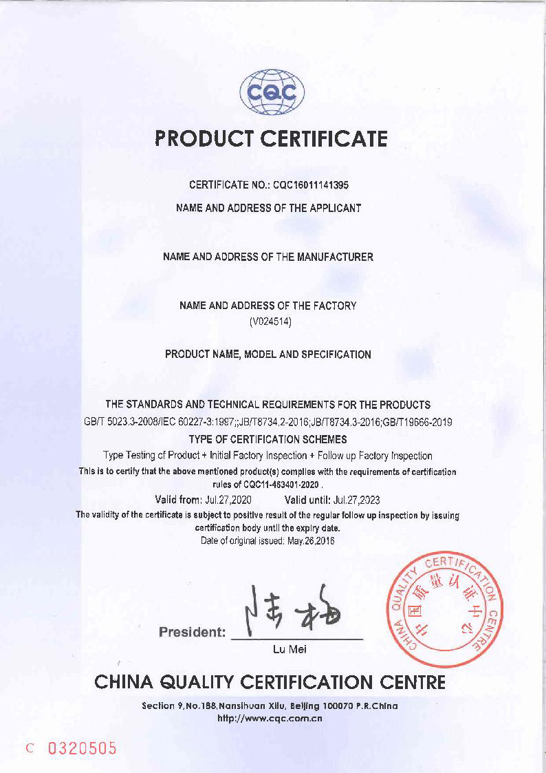 產(chǎn)品通過(guò)中國(guó)國(guó)家強(qiáng)制性產(chǎn)品認(rèn)證,ISO9001質(zhì)量管理體系認(rèn)證等管理體系認(rèn)證;